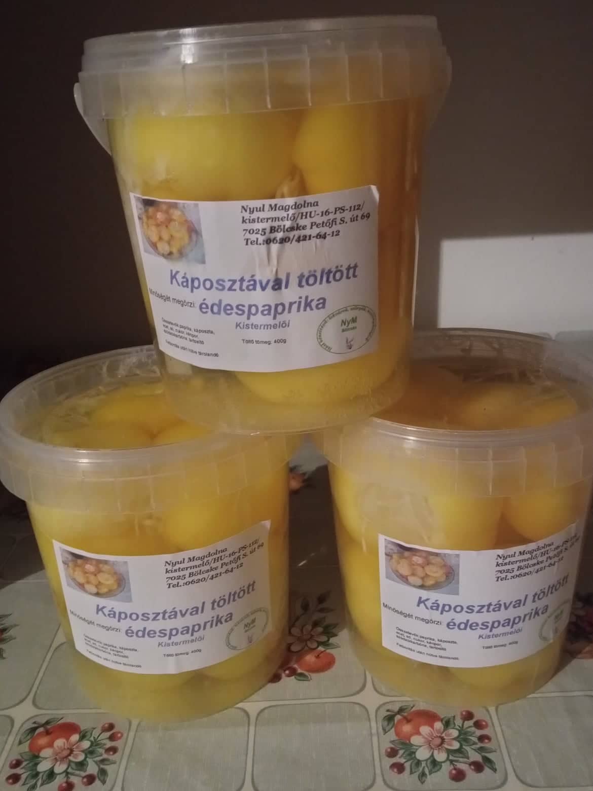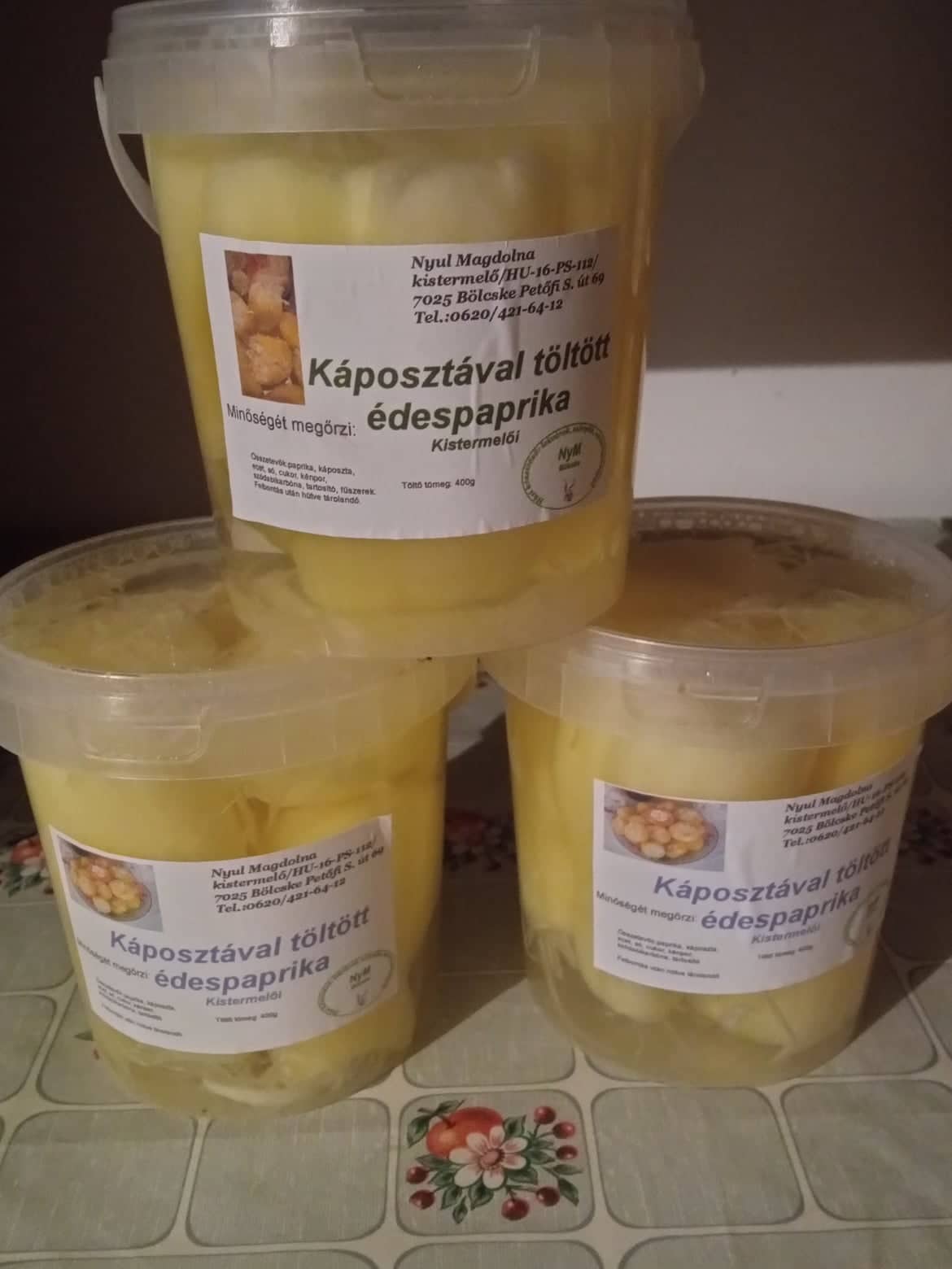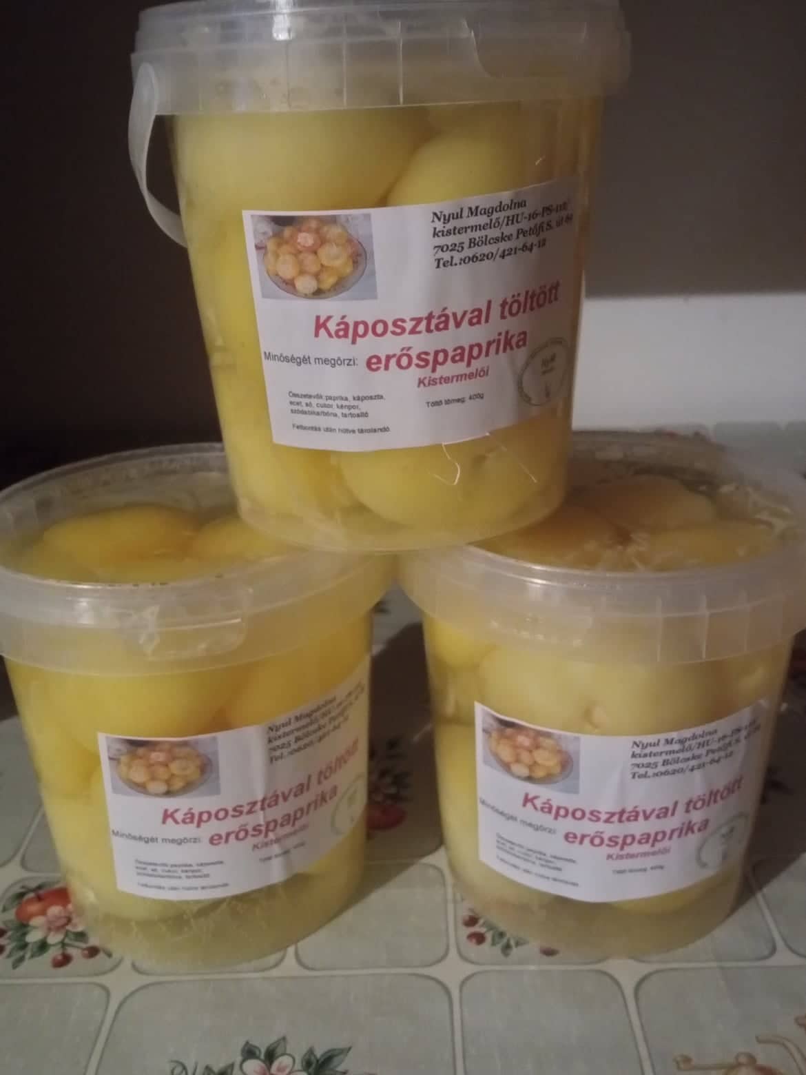 Összetevő: paprika, káposzta, ivóvíz, só, ecet, cukor, na-benzoat, borkén, szódabikarbóna