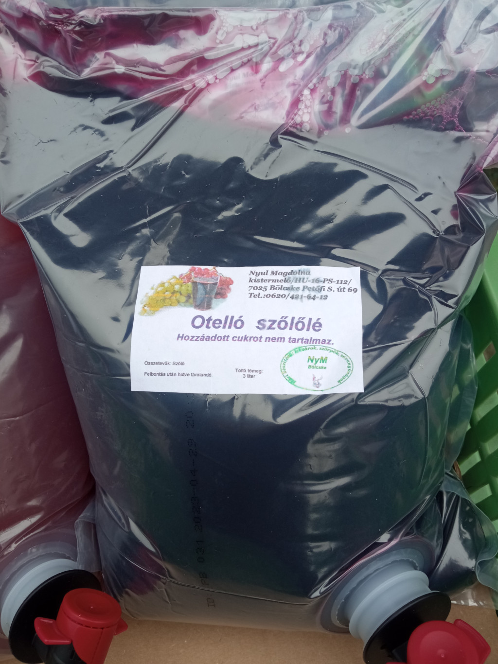 Otelló szőlőből készült szőlőlé, hőkezeléssel tartósított. Cukormentes. 3l-es csomagban.